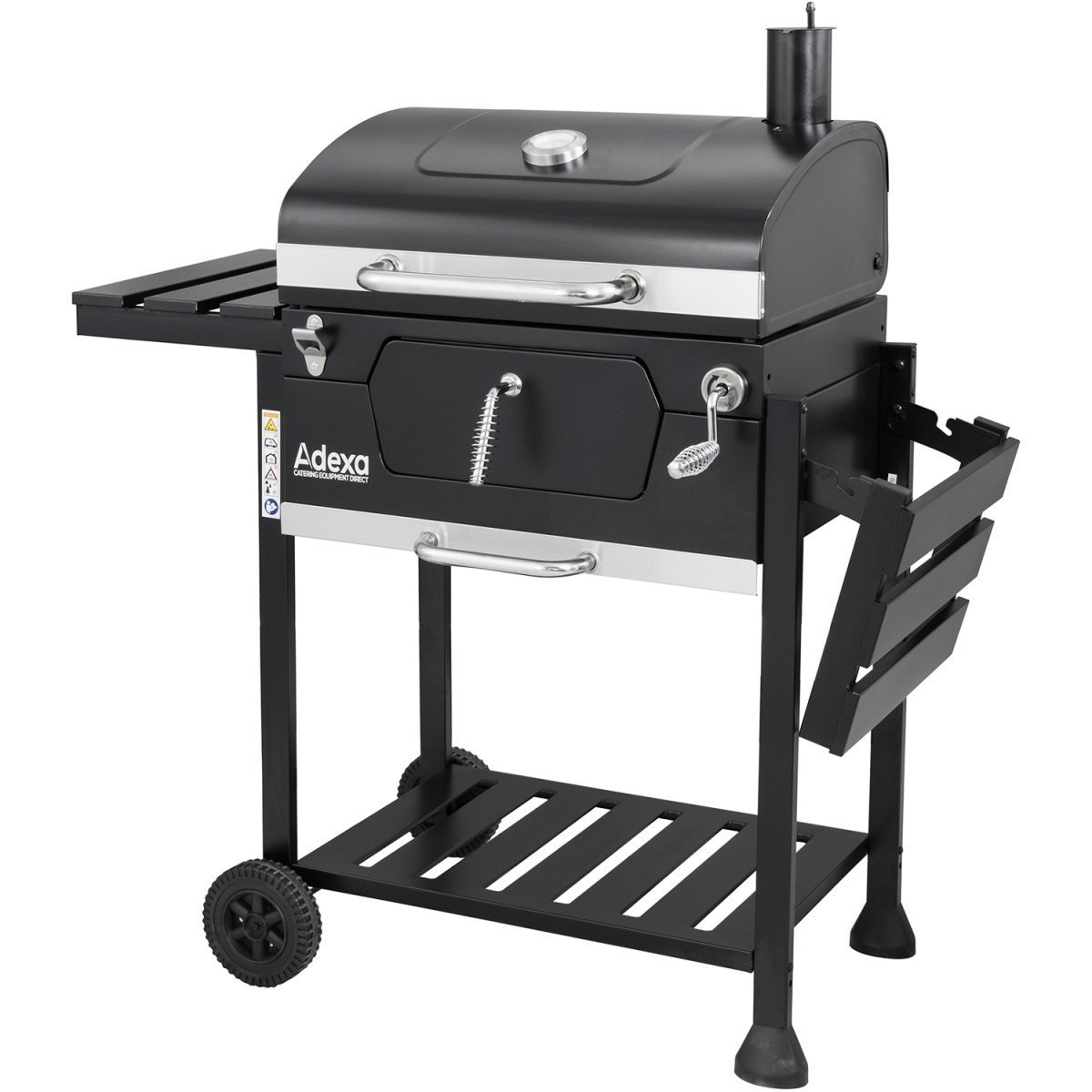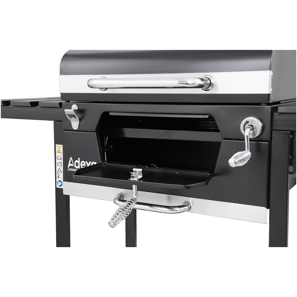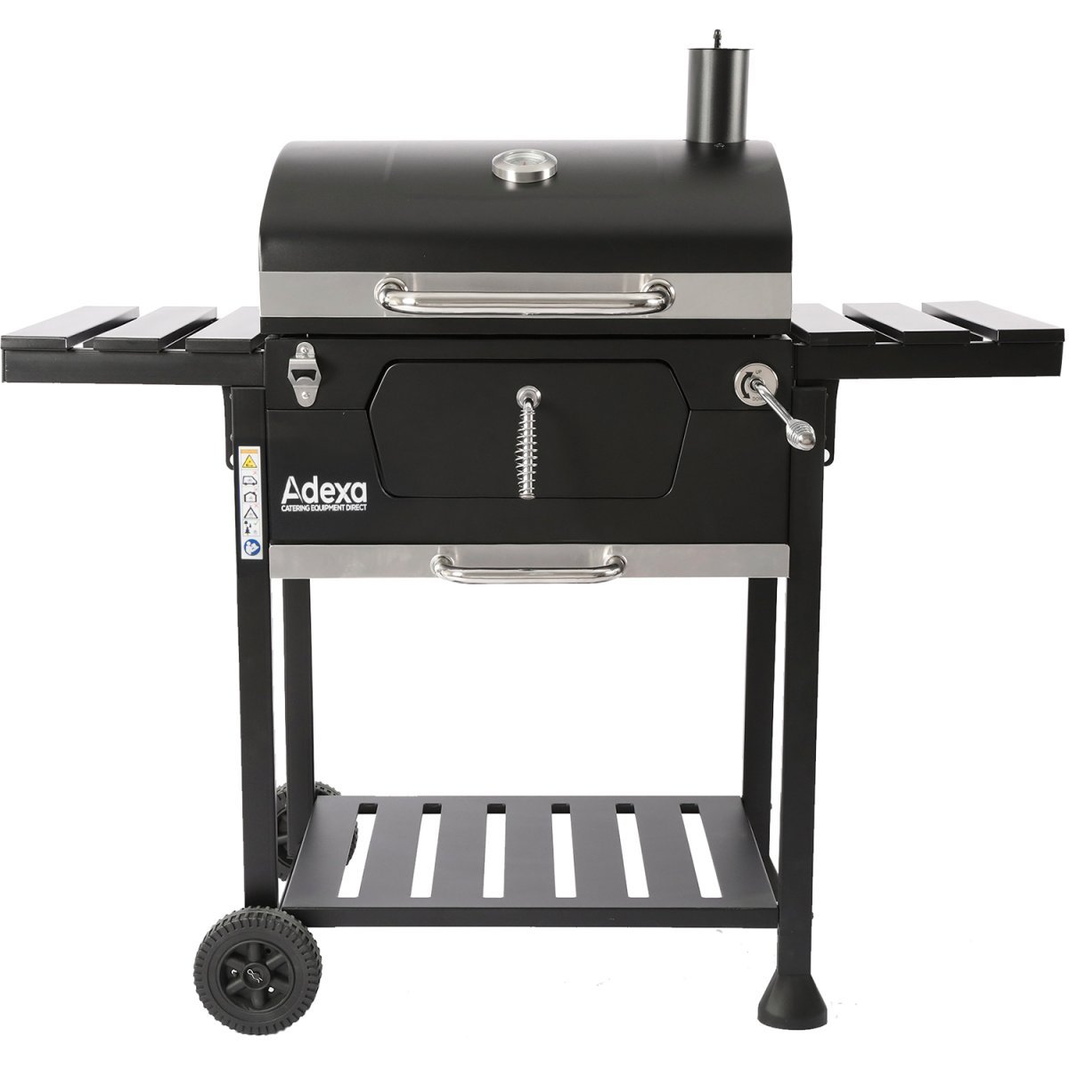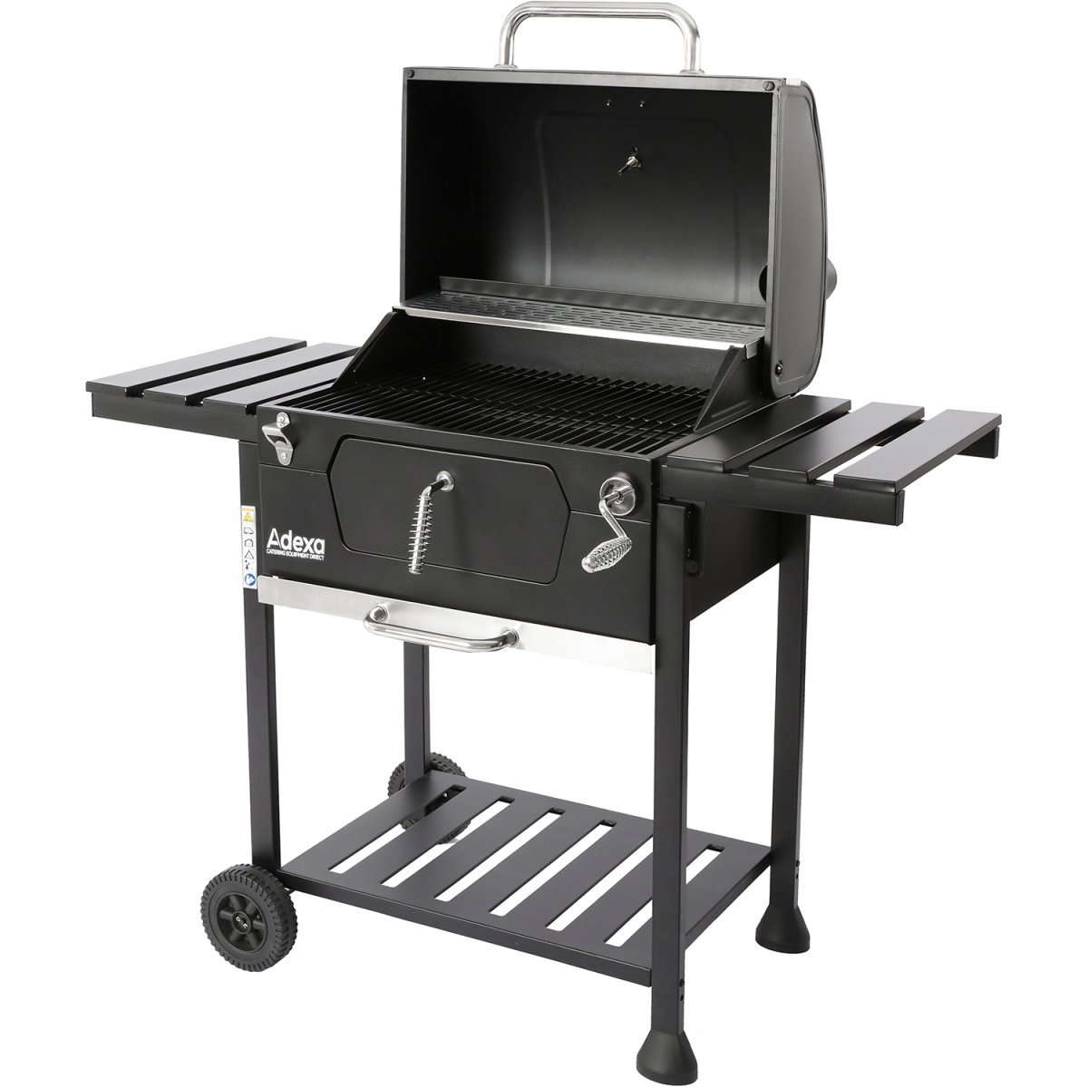 This charcoal grill is perfect for dinner party and camping, the rugged and compact design provides enough space for your barbecue. Made of high-quality steel. Rust-resistant cold-rolled steel makes it more durable. Two rolling wheels are installed at the bottom, which is convenient to move. Heat gauge helps you control the temperature. The side shelves are designed for putting grilling tools, plates, and spices. Side air vent for precise temperature control. Adjustable cooking height, easy to add charcoal and control temperature..