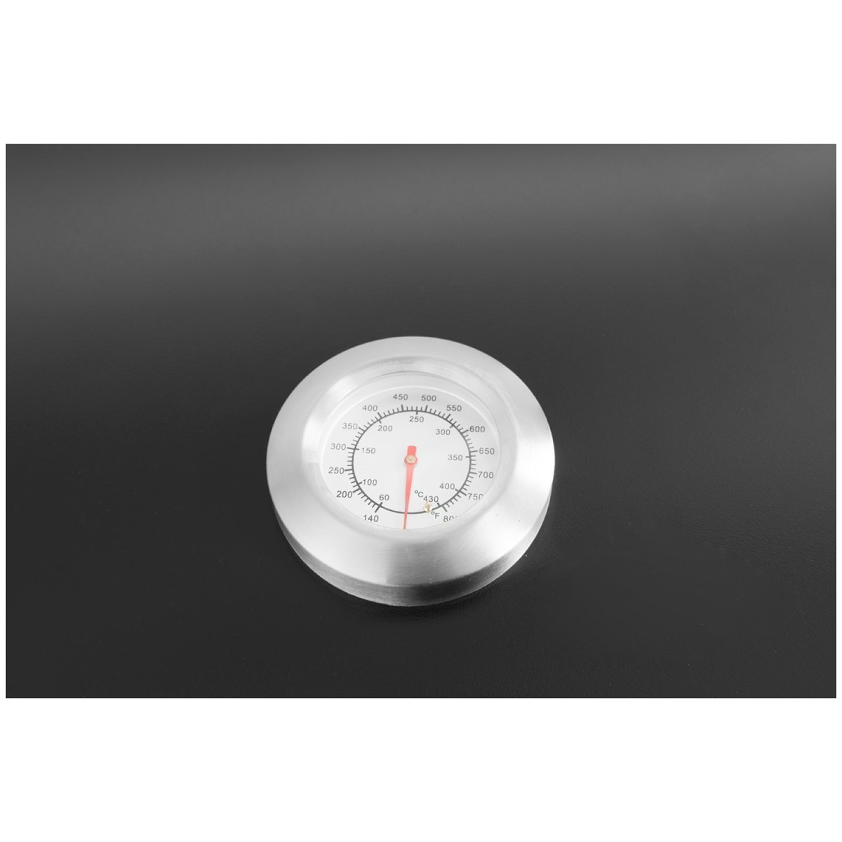 - Lid: Black powder coated steel with stainless steel decoration sheet at the base of lid