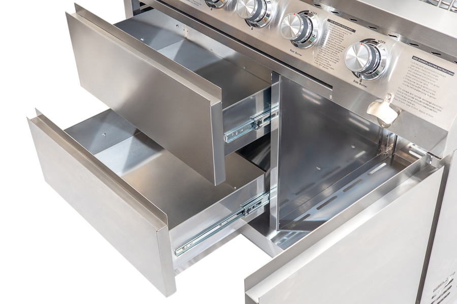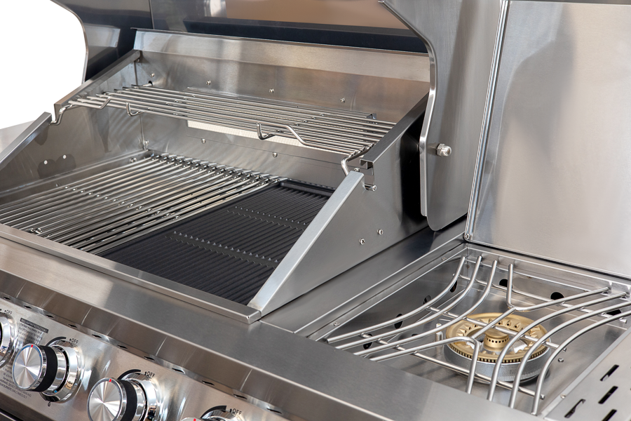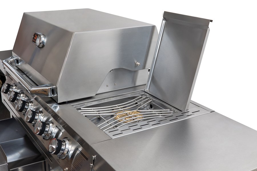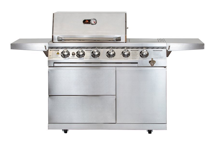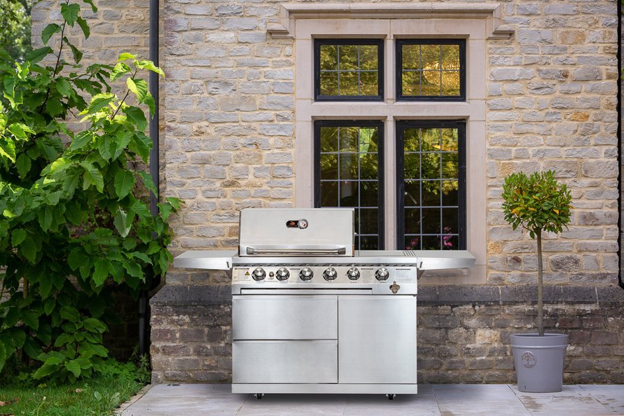 The Cirencester 4 has a dazzling full 430 stainless steel construction, featuring 4 main burners, a side burner, a ceramic infrared back burner and generous side shelves that provide plenty of cooking space.
