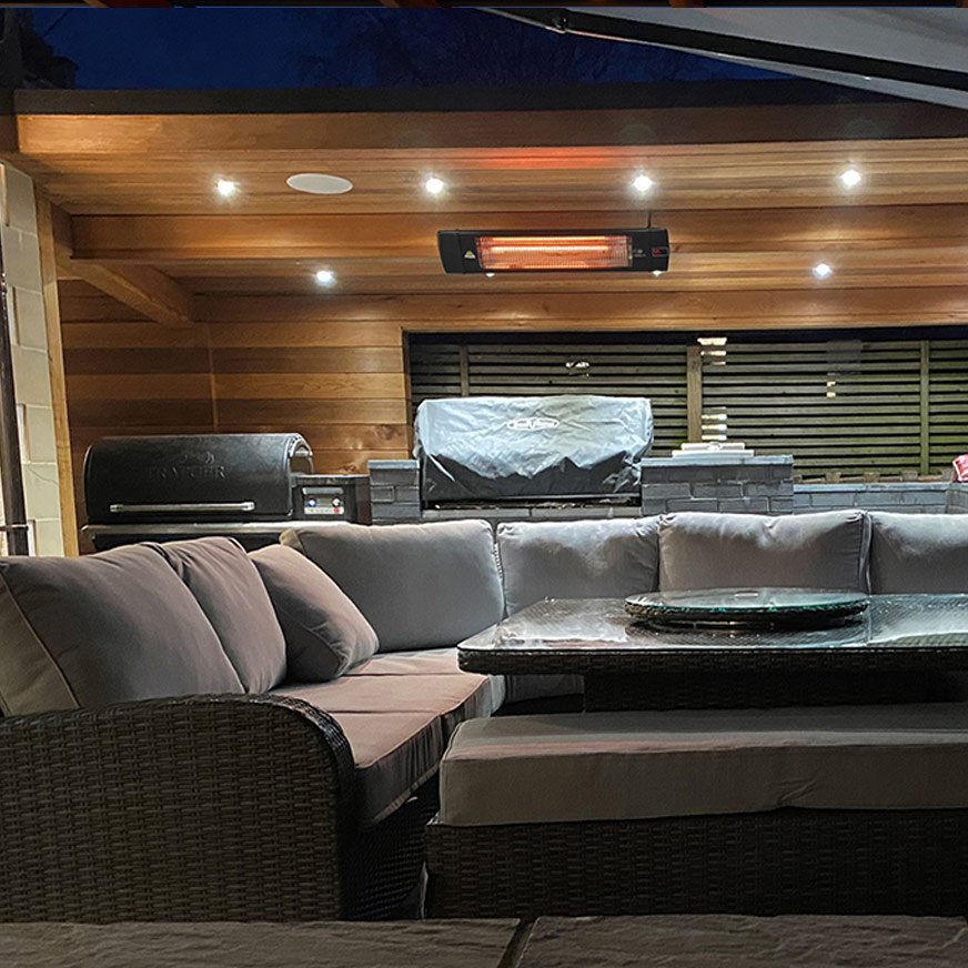 - Warm glow, ultra-low glare heater, honeycomb grill